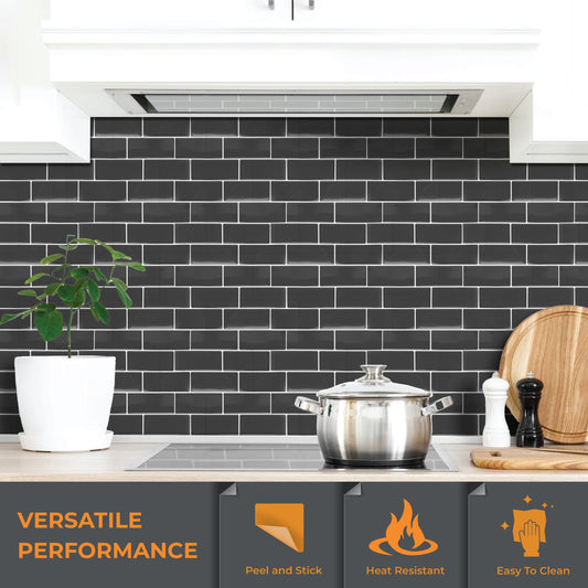 Elegant Dark Grey Glossy 3D Sticker Tile 30.5 x 30.5cm - 6 pcs