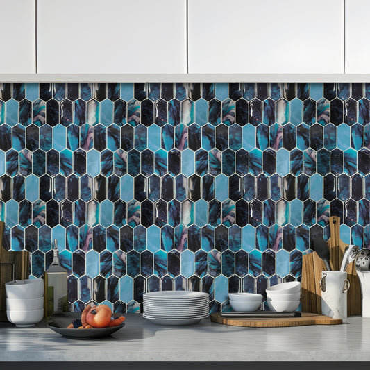 Blue Hexagon Honeycomb 3D Sticker Tile 12 x 12 inches / 30.5 x 30.5 cm - 6pcs in a pack