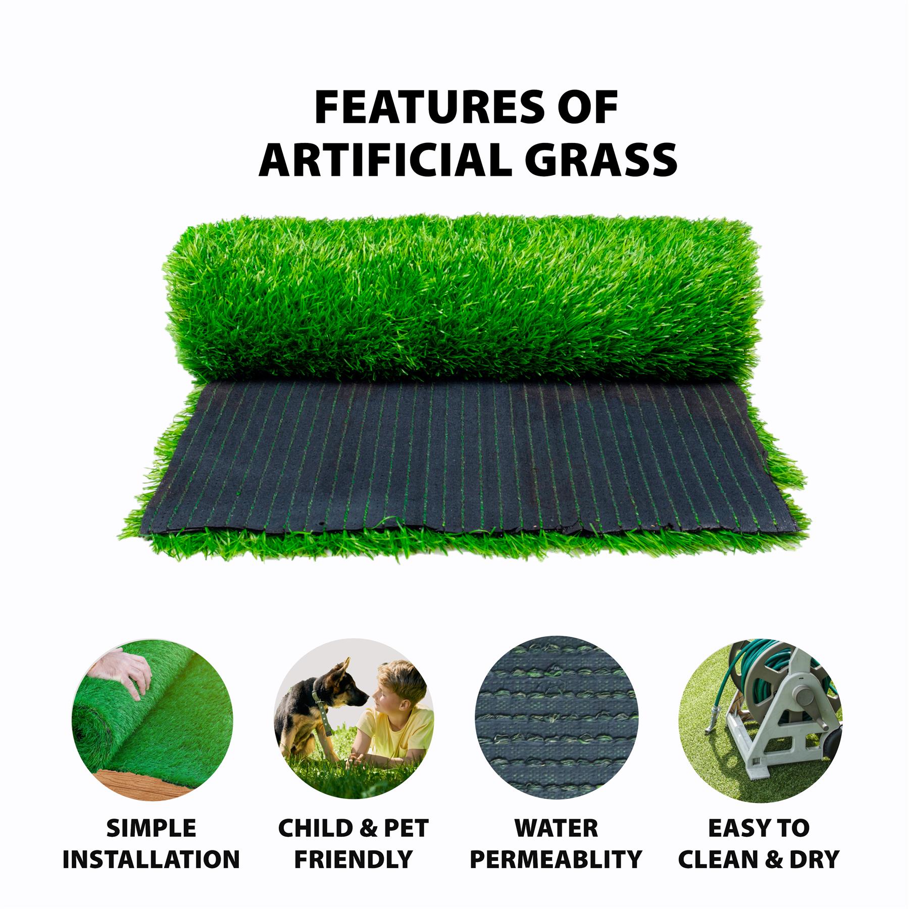 Easy Installation: Designed to be DIY-friendly, our grass comes with a latex backing for easy fitting, and it includes drainage channels for effective water runoff.
