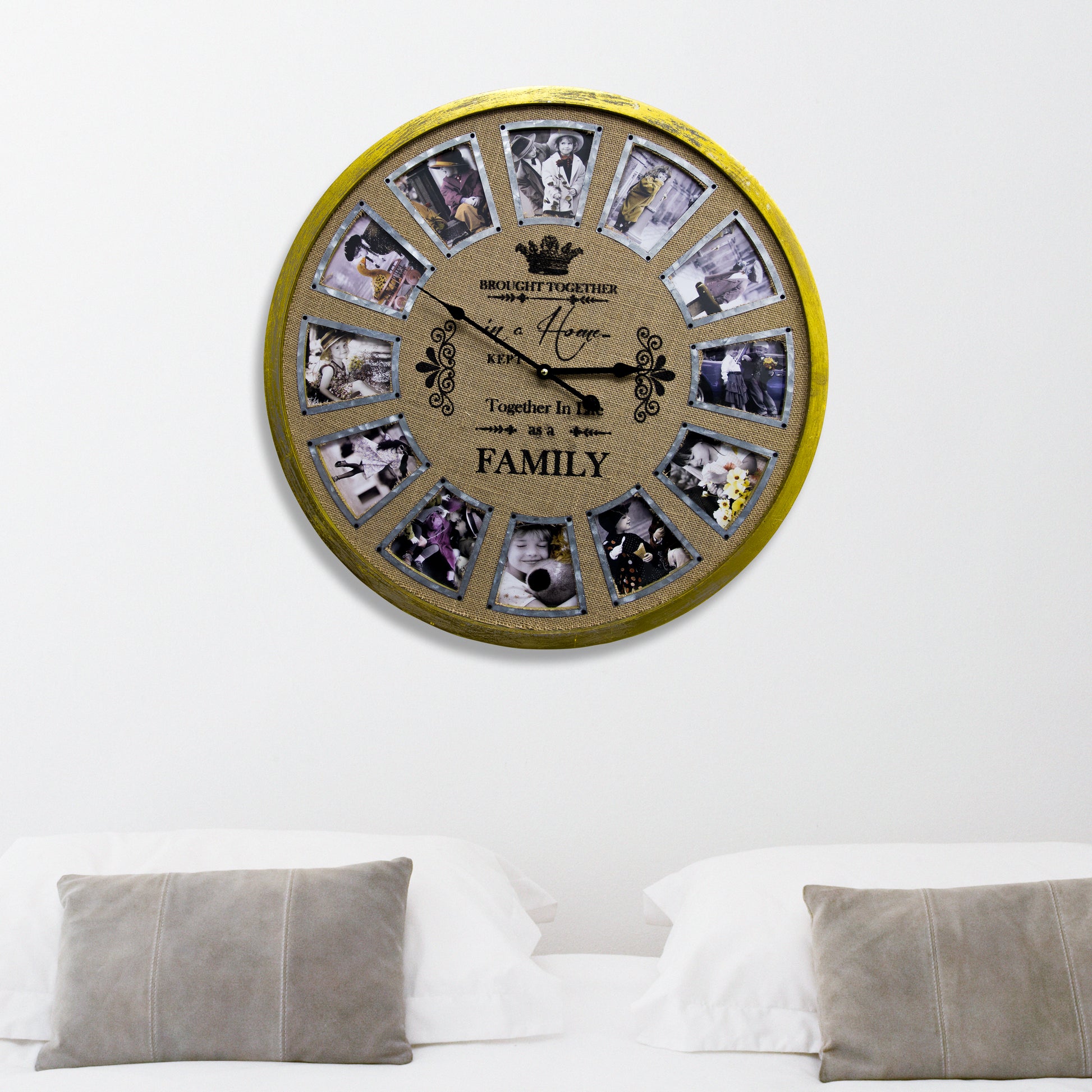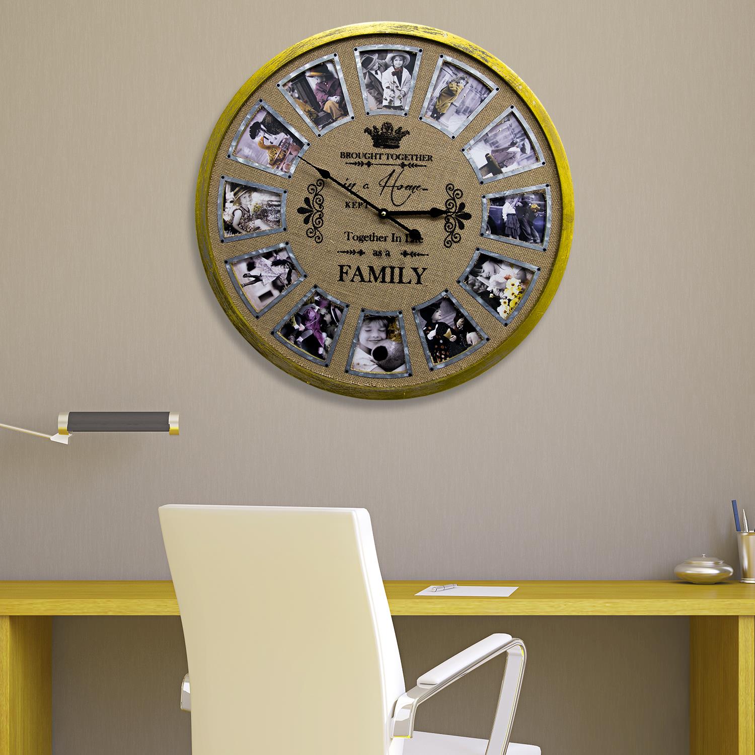 With its rustic design, this clock features 12 photograph frames surrounding the clock's face, allowing you to place your most precious family photos. It's not just a clock – it's a celebration of love, family, and memories, making it an ideal addition to your home or a thoughtful gift for any occasion.