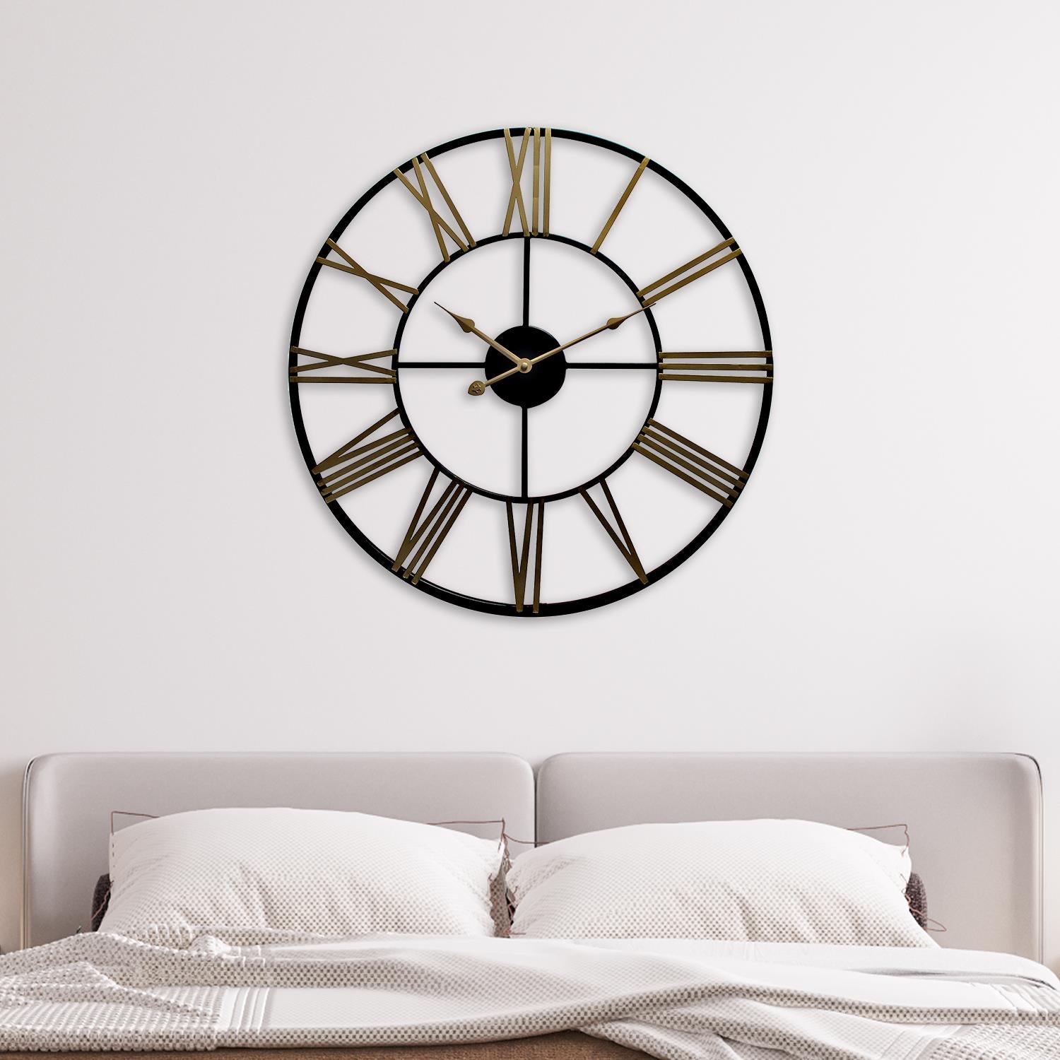 - Elegant and Modern Design: The slim black frame paired with gold-painted roman numerals creates an elegant yet industrial vibe, making this clock a statement piece in any room.