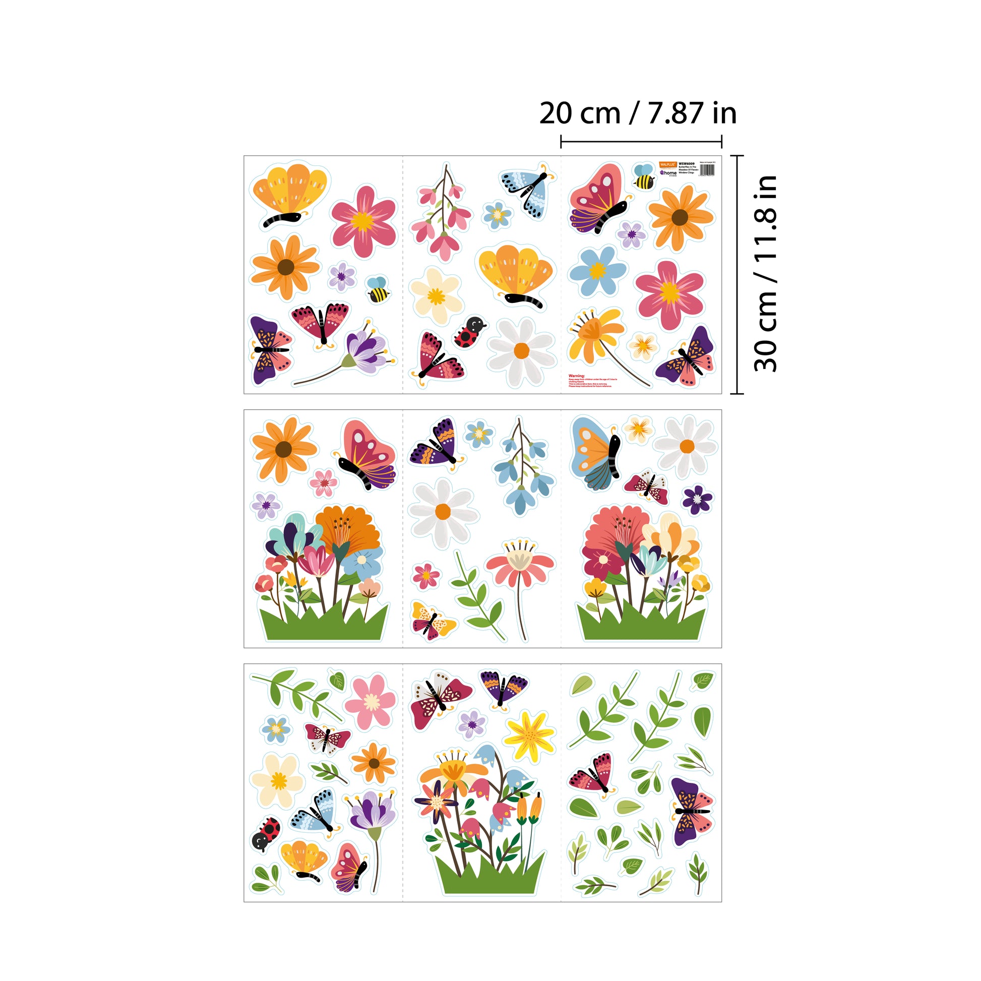 Spring Butterflies in the Meadow of Flowers Window Clings