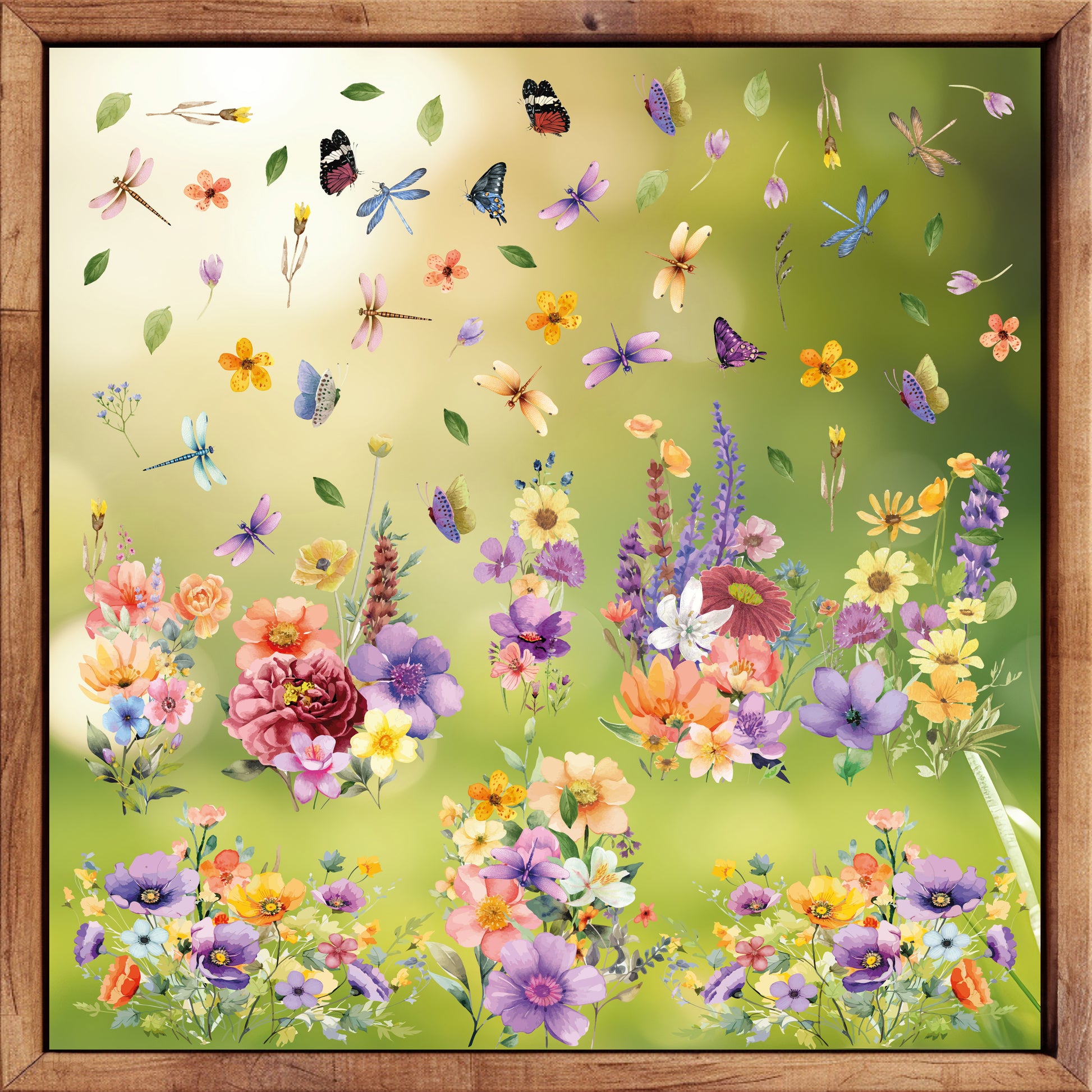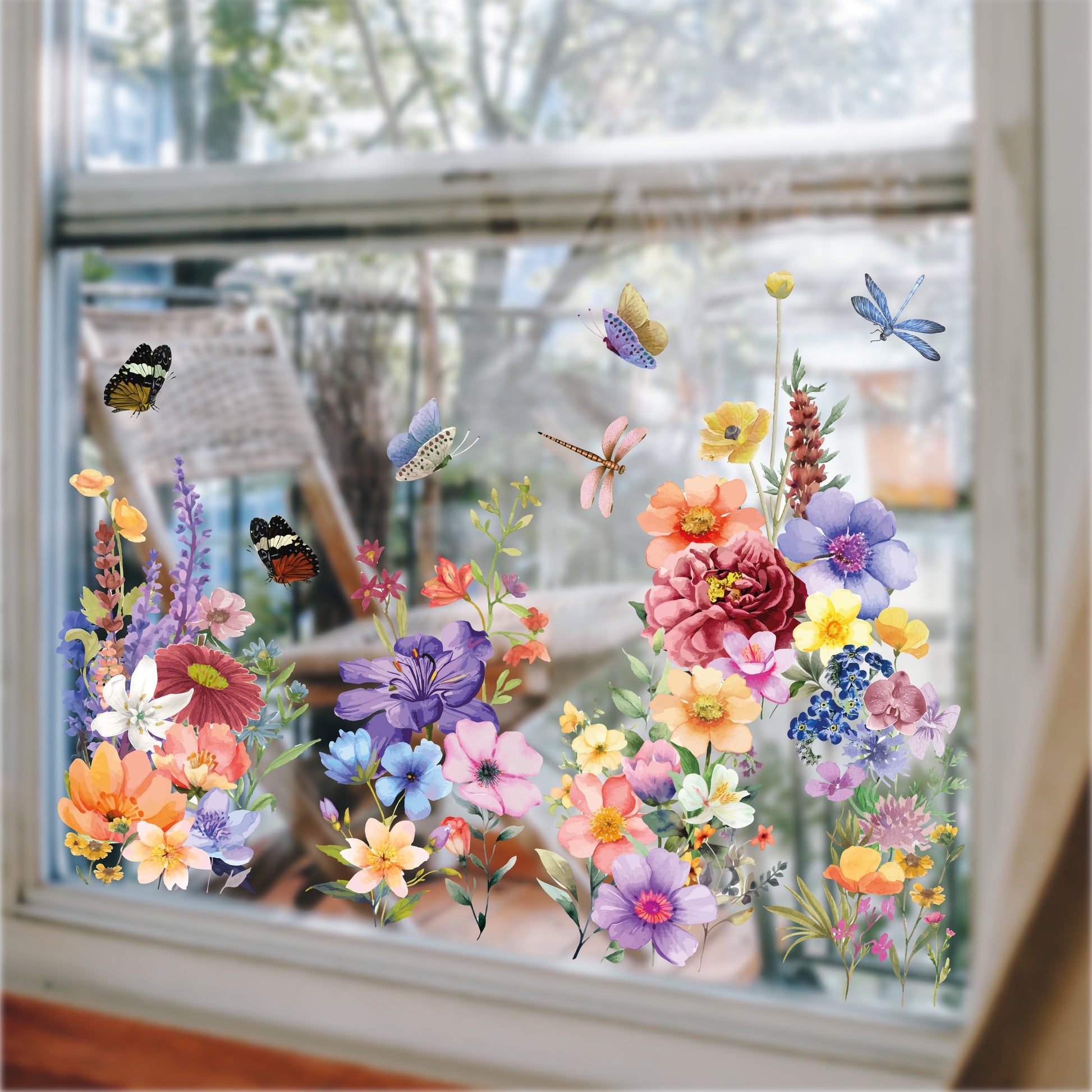 Spring Colourful Flowers with Dragonflies and Butterflies Window Clings