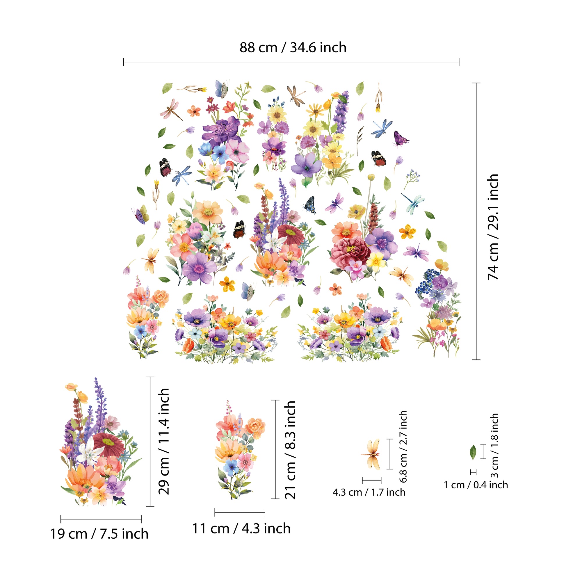 WSW6018 - Colourful Flowers with Dragonflies and Butterflies Window Clings