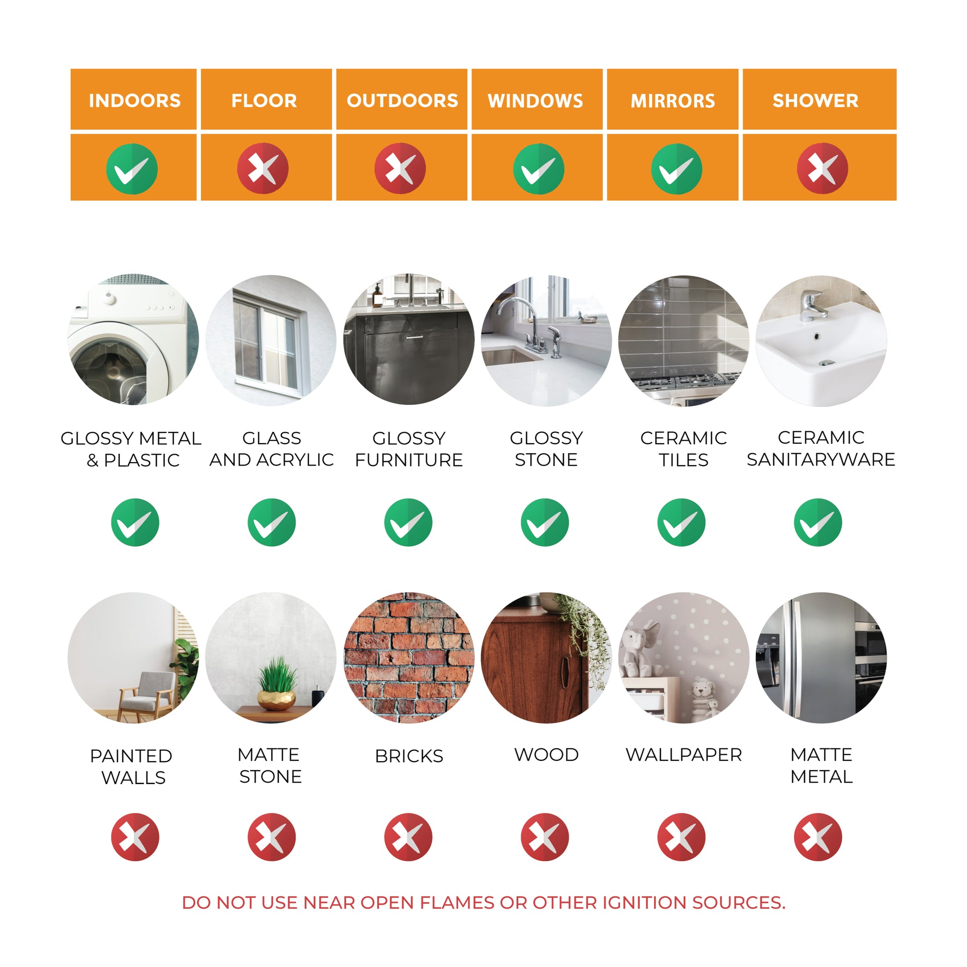 - Versatile Application: Suitable for windows, mirrors, and most glossy surfaces, perfect for home or party decorations.
