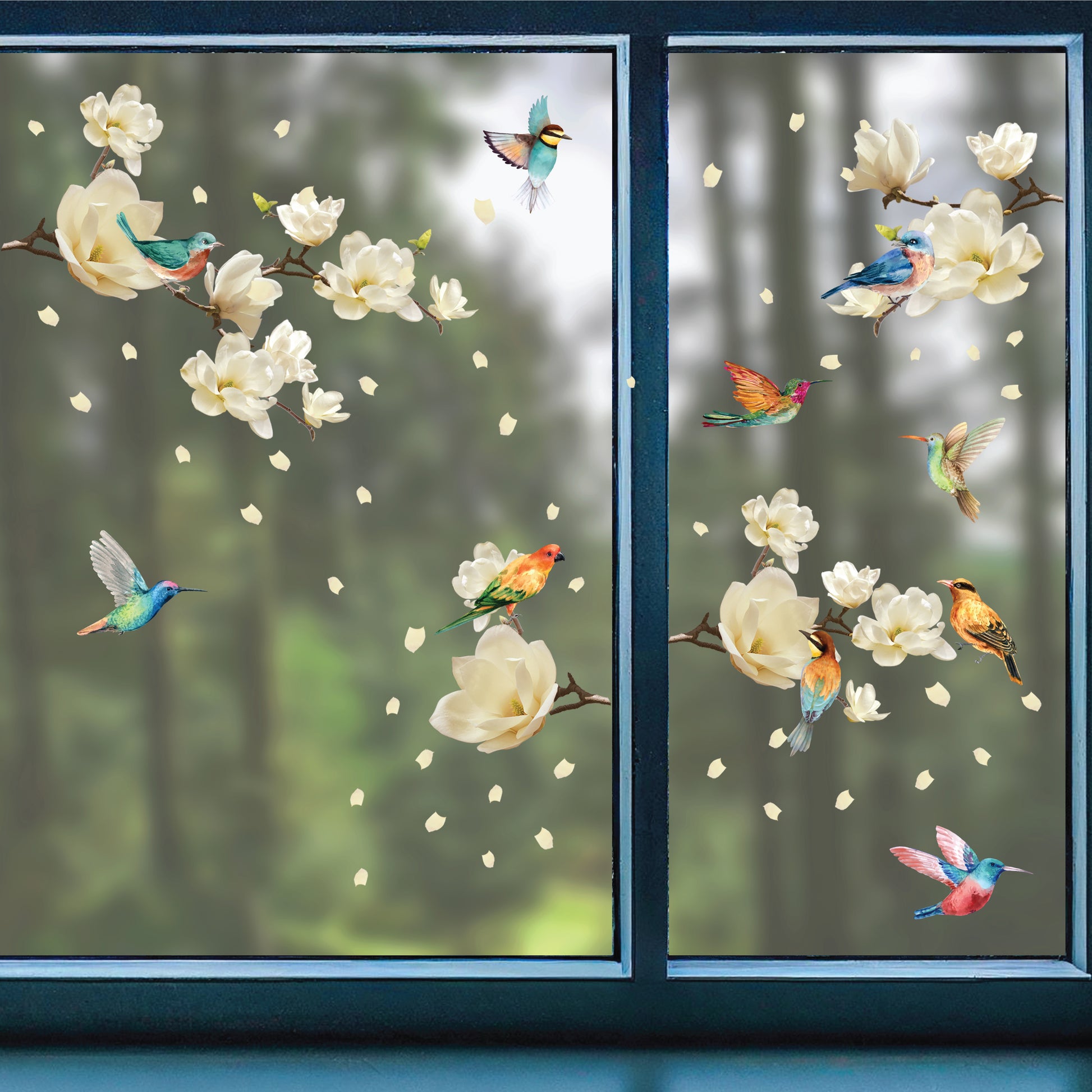 WSW6023 - White Magnolia Flowers with Birds Window Clings