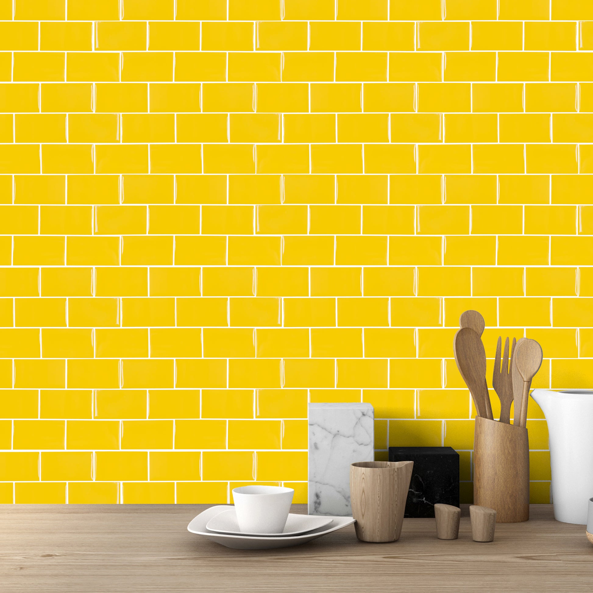 WT3D1819 - Pure Yellow Glossy Subway Metro Classic Brick 3D Tile Sticker 30.5 x 15.4cm (12 x 6 in) - 20pcs in a pack