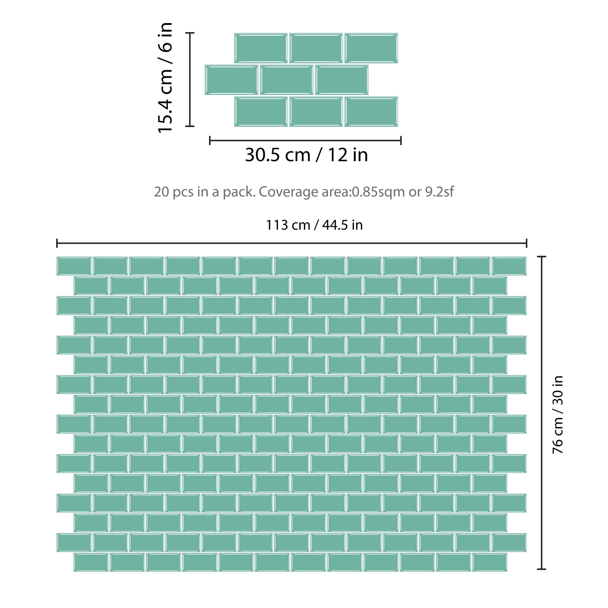 WT3D1821 - Capri Sea Metro Subway Tile 3D Tile Sticker 30.5 x 15.4cm (12 x 6 in) - 20pcs in a pack