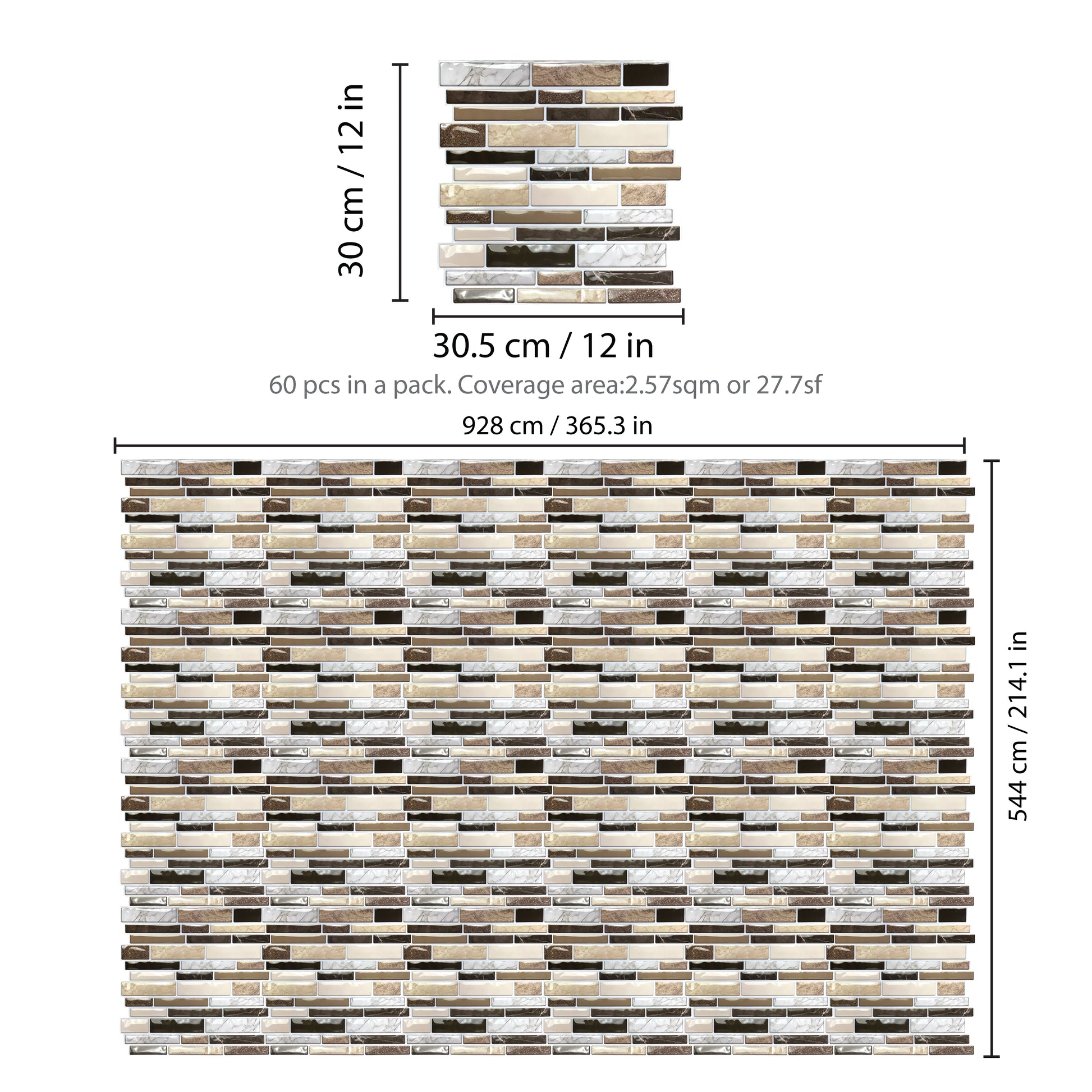 WT3D1825 - Brown Stone Glossy Mosaic 3D Tile Sticker 30.5 x 30.5cm (12 x 12 in) - 10pcs in a pack