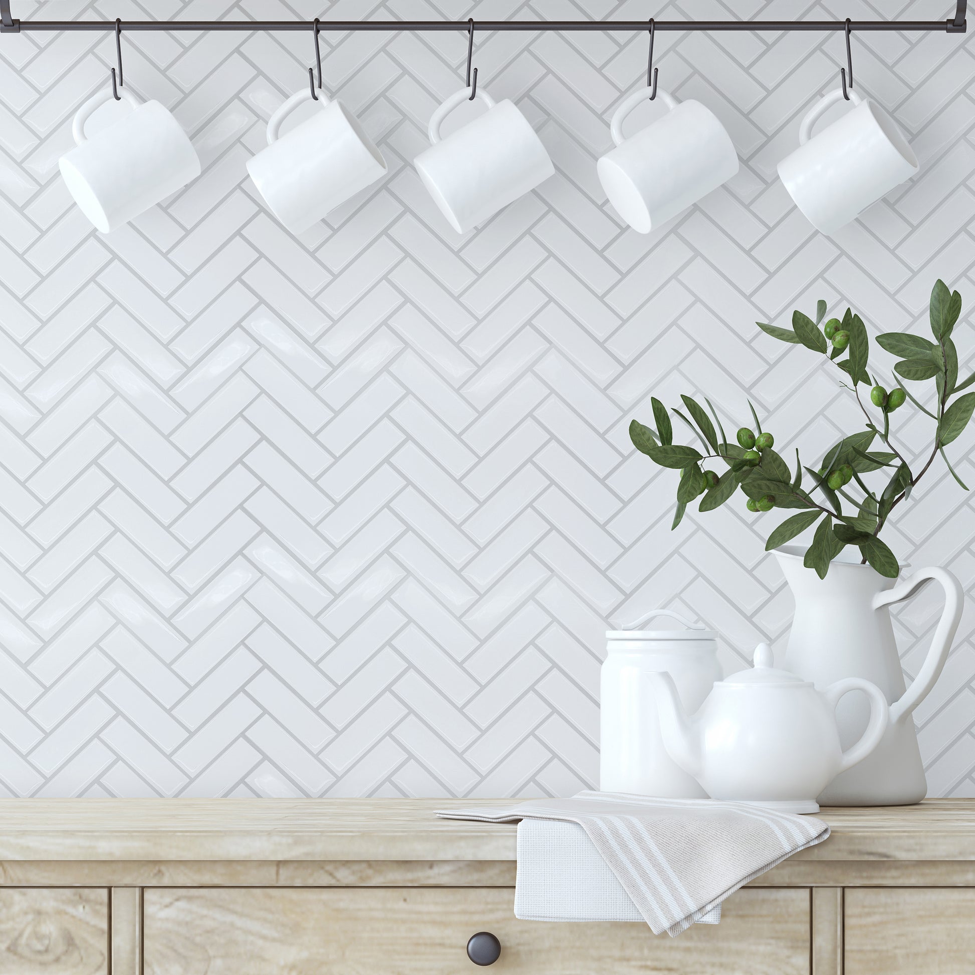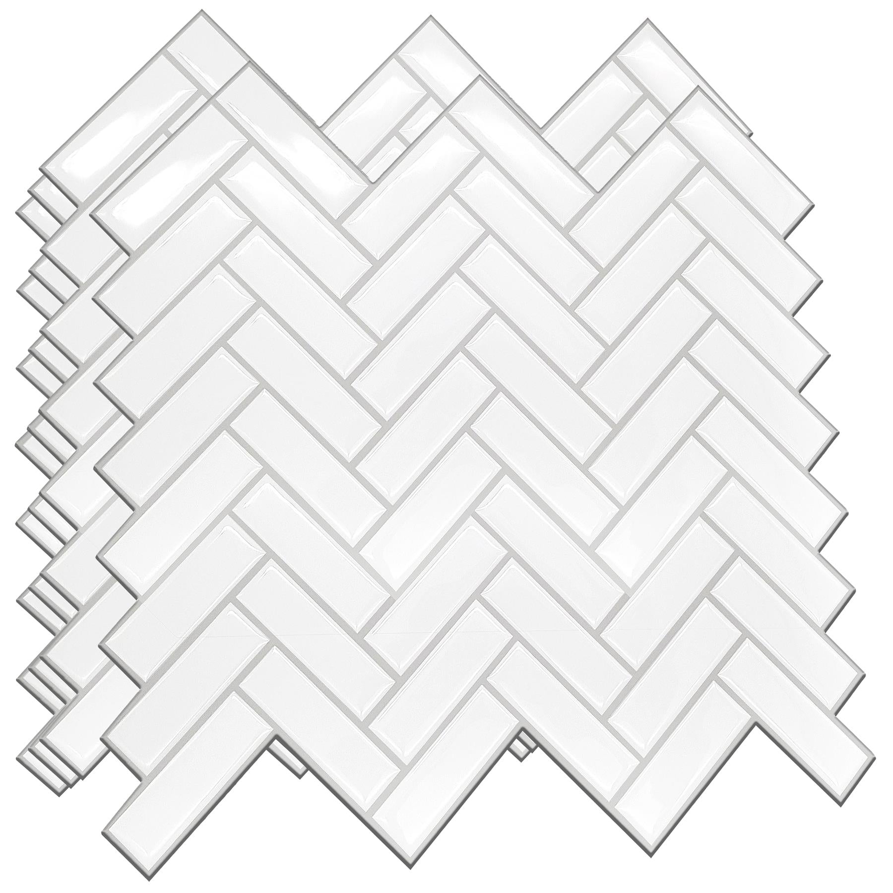 White Herringbone Glossy 3D Tile Stickers – Stylish and Easy DIY Décor